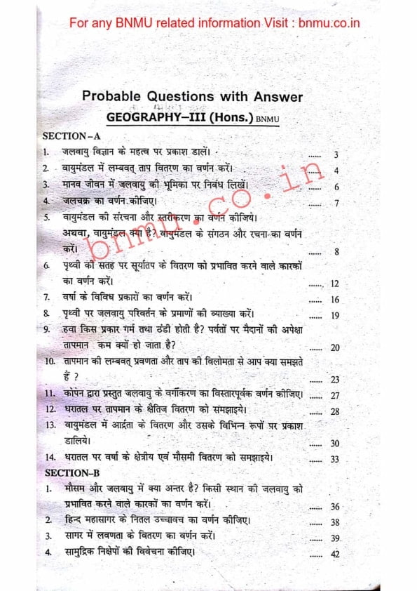 BNMU Geography-2 Part-2 Hons. Guess Paper Page 1-25» Page 26-50» Page 51-81»