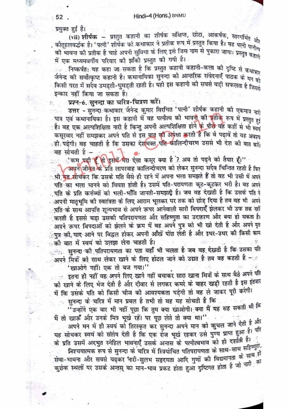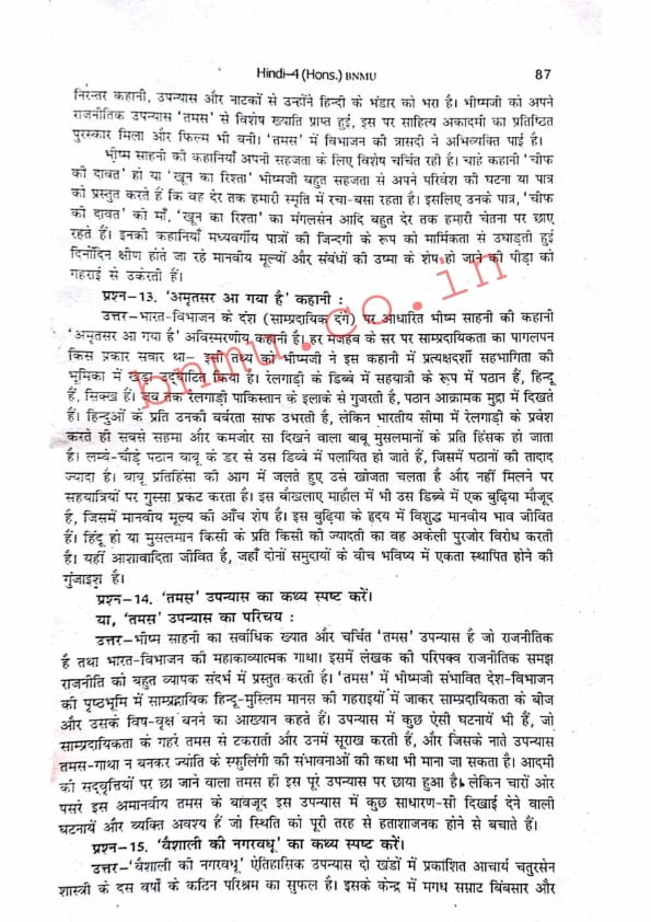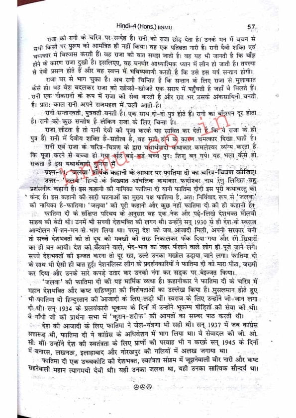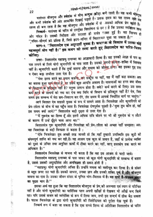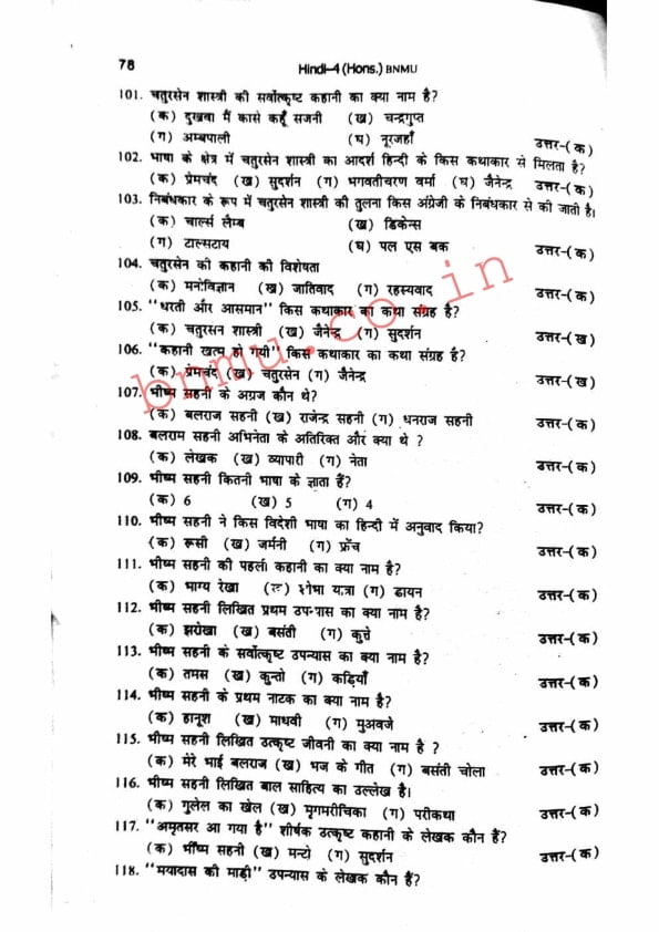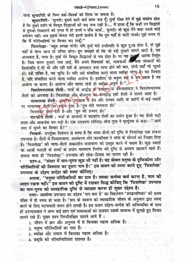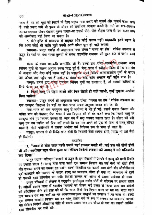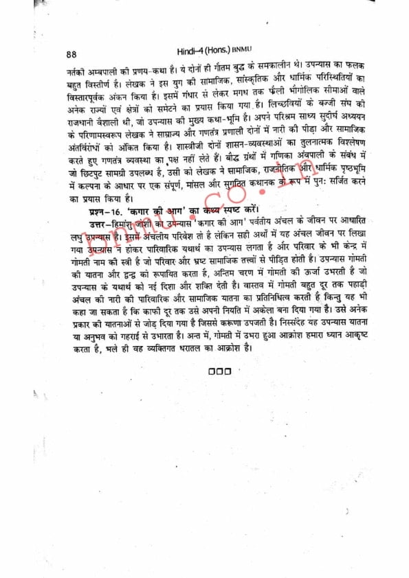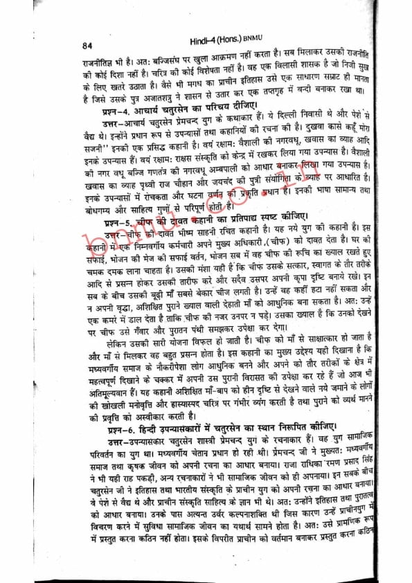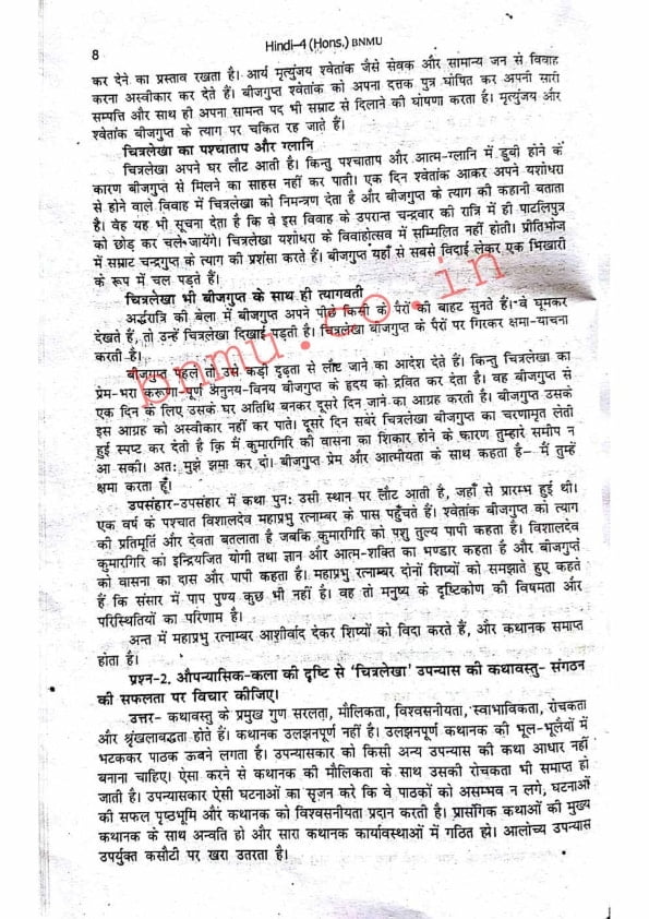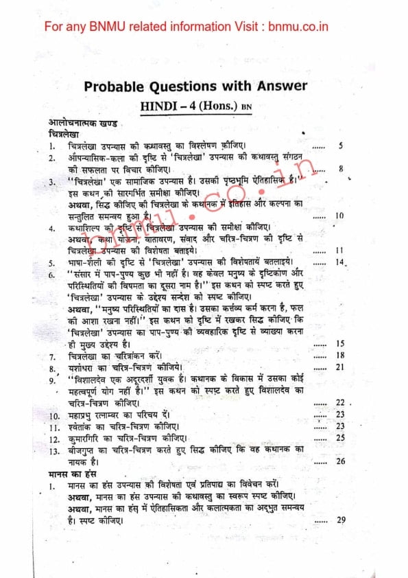 BNMU Hindi-4 Part-2 Hons. Guess Paper