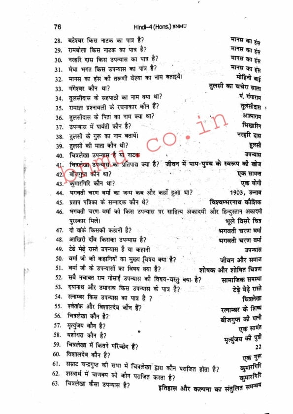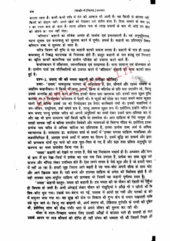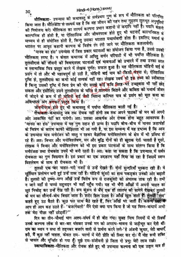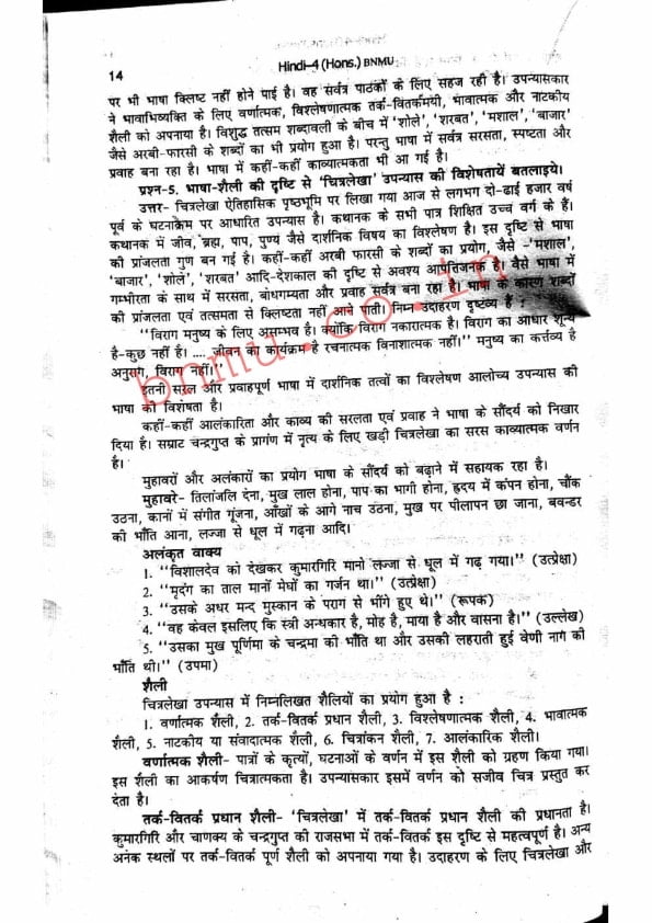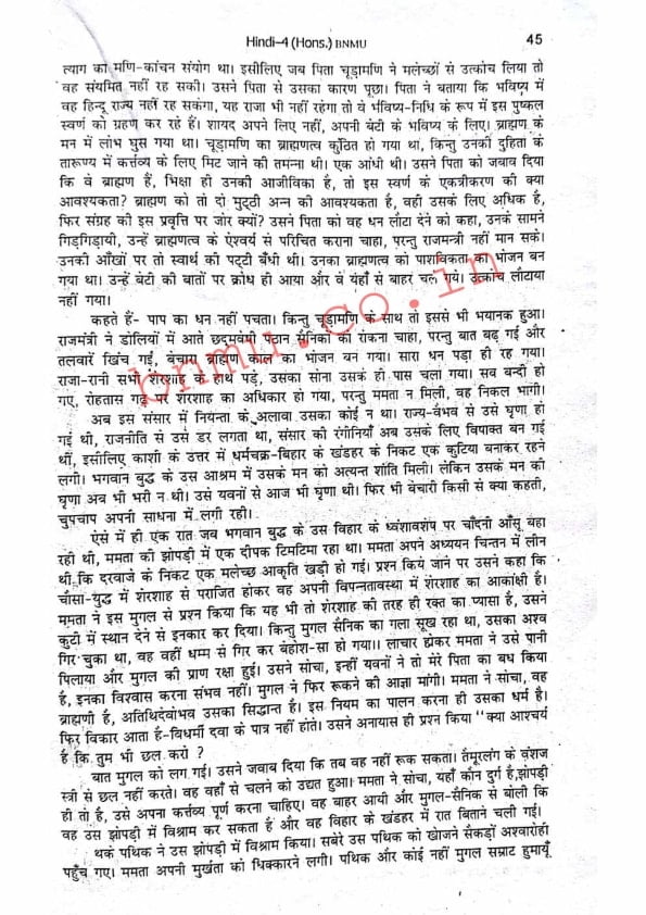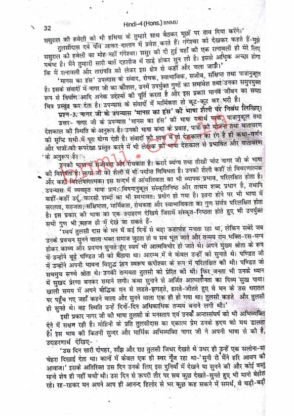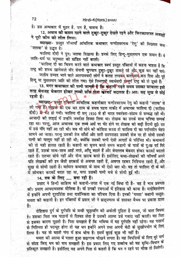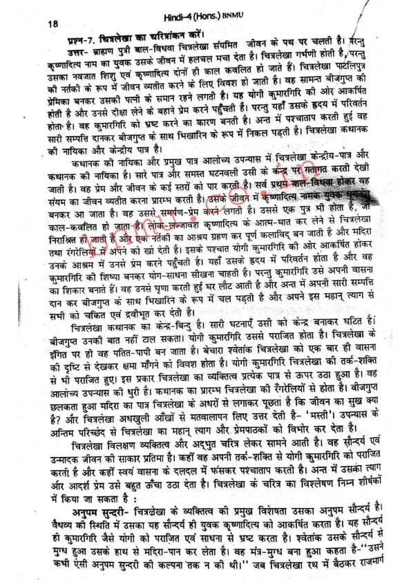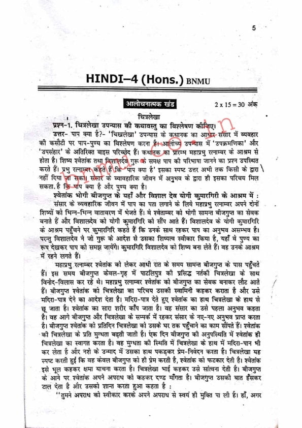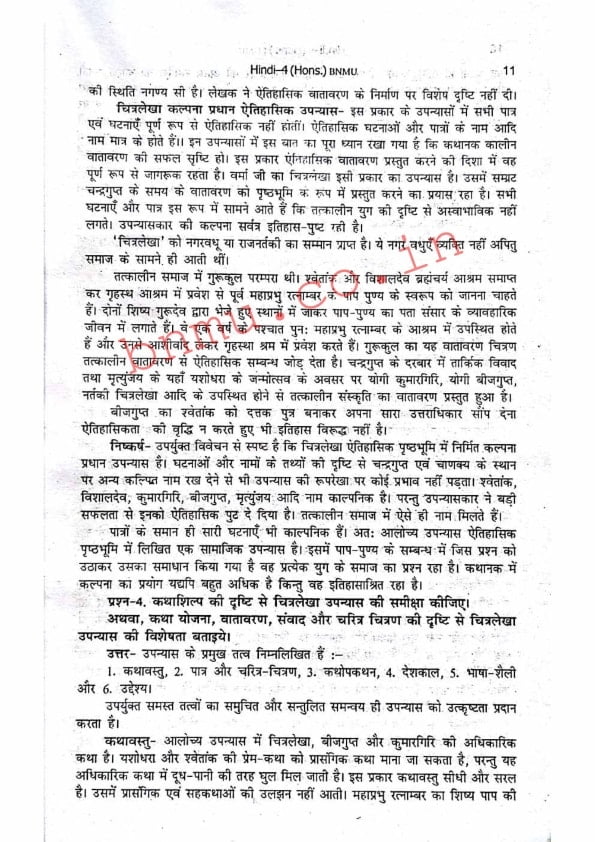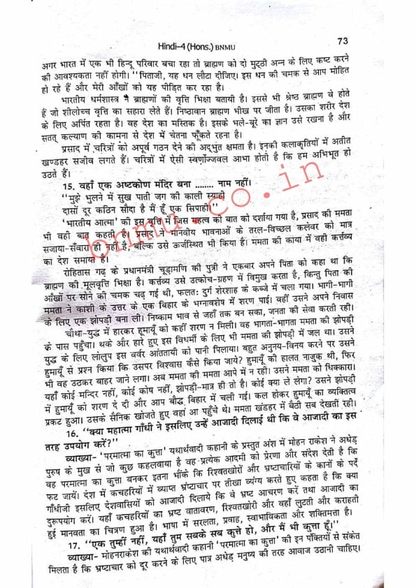 BNMU Hindi-4 Part-2 Hons. Guess Paper