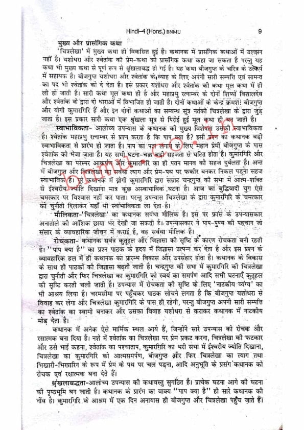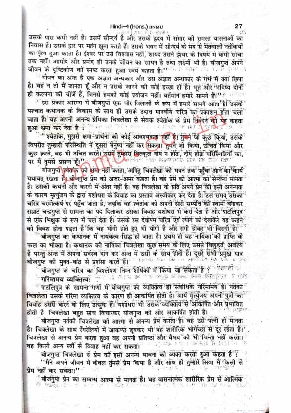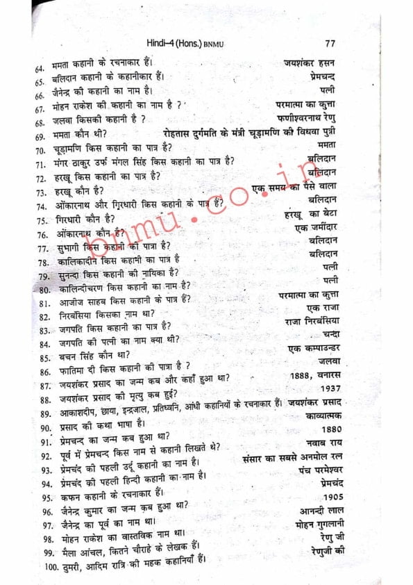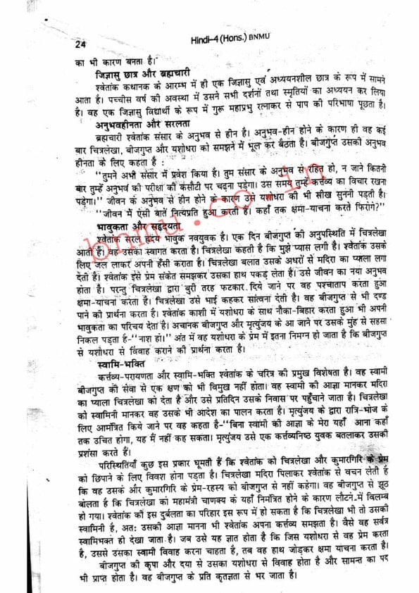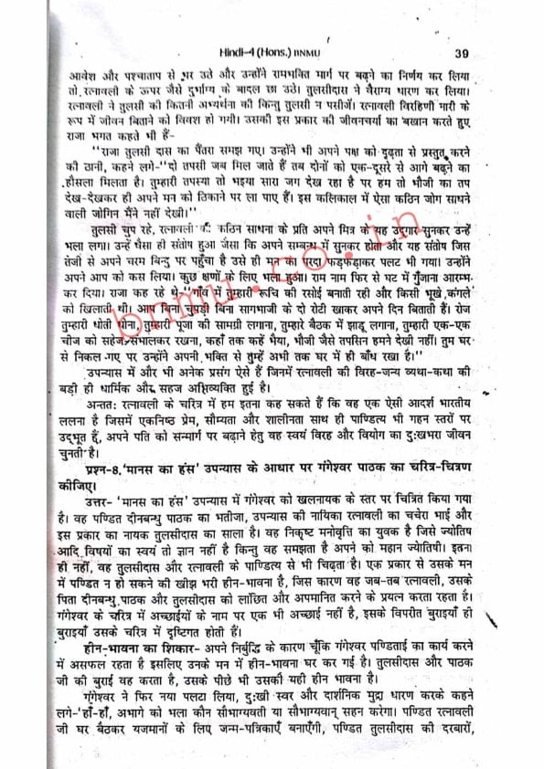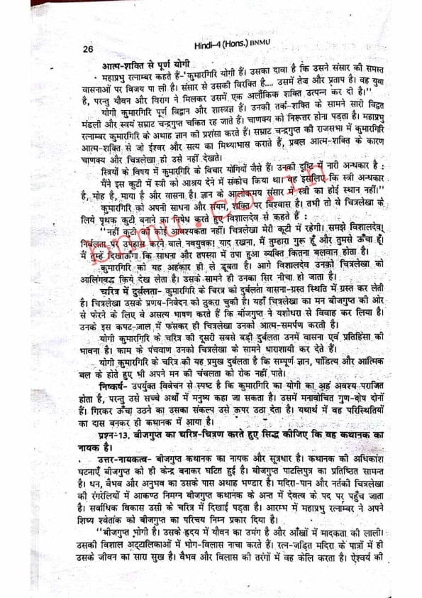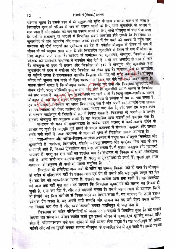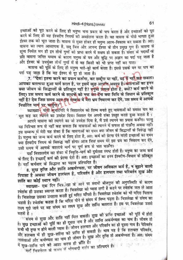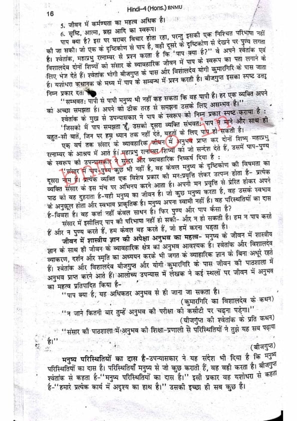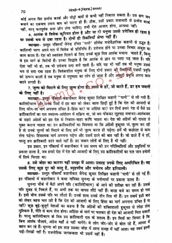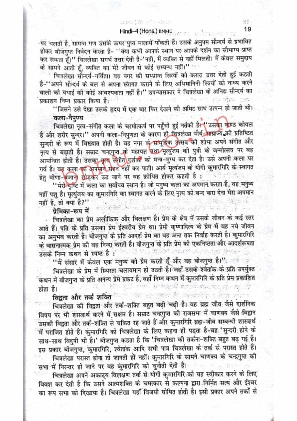 BNMU Hindi-4 Part-2 Hons. Guess Paper