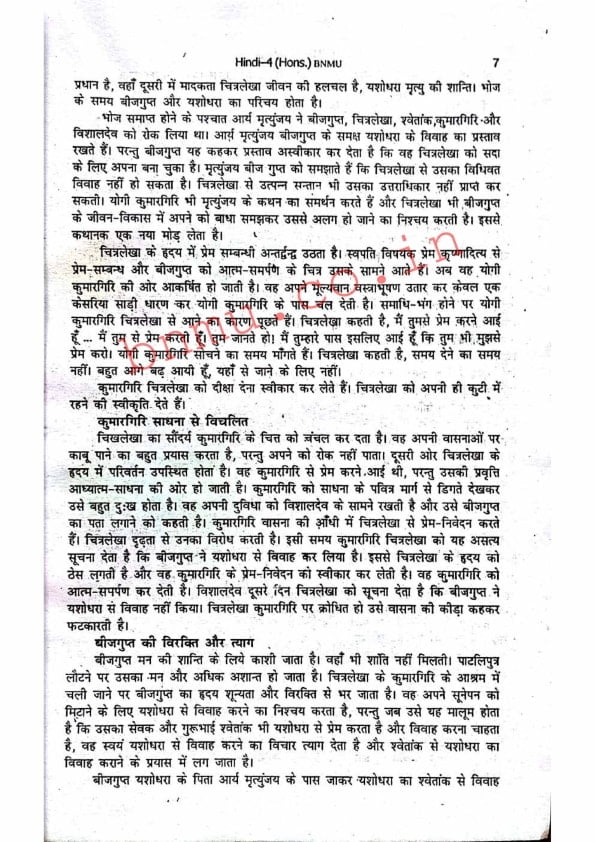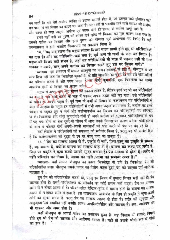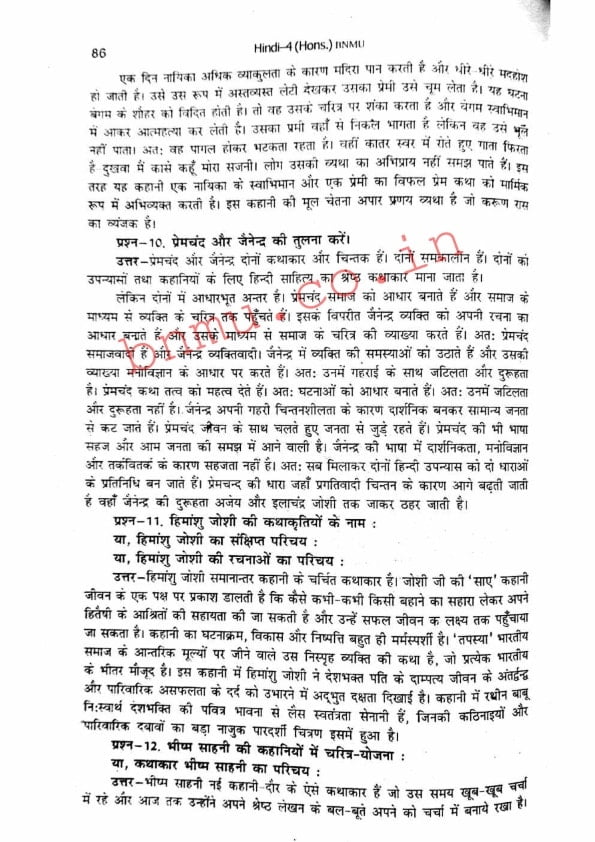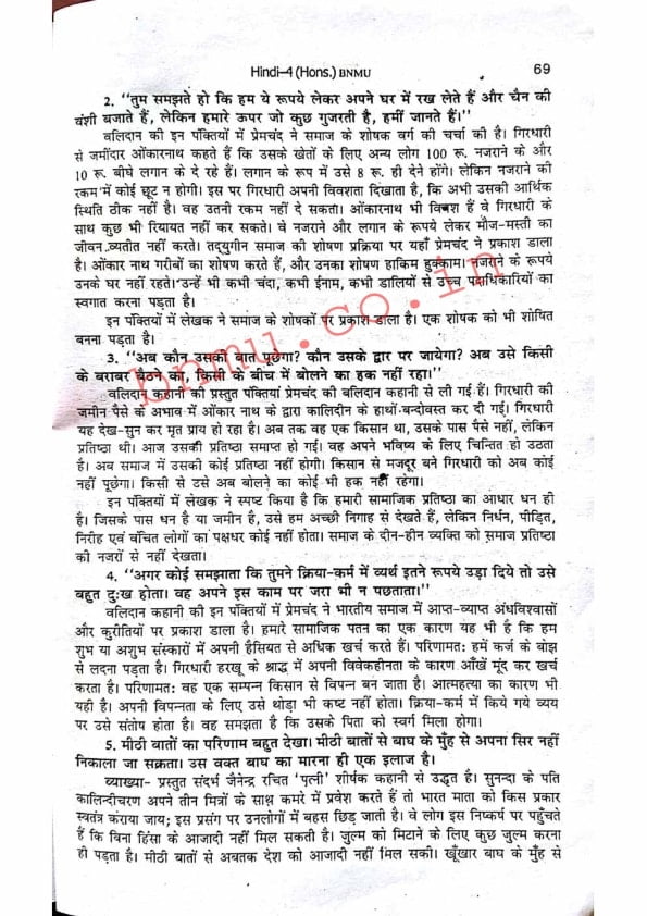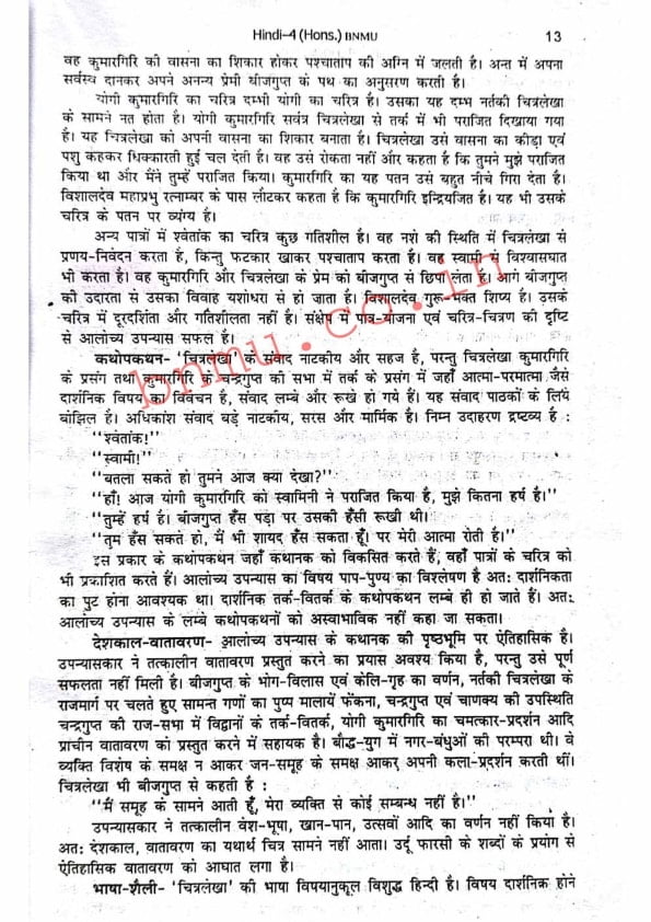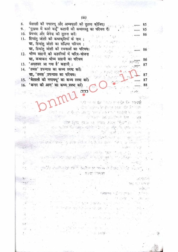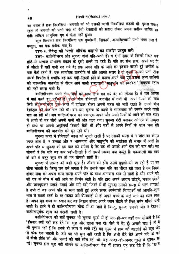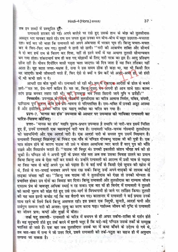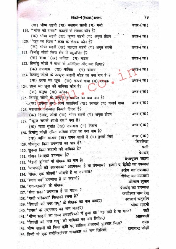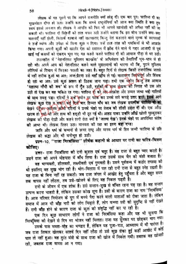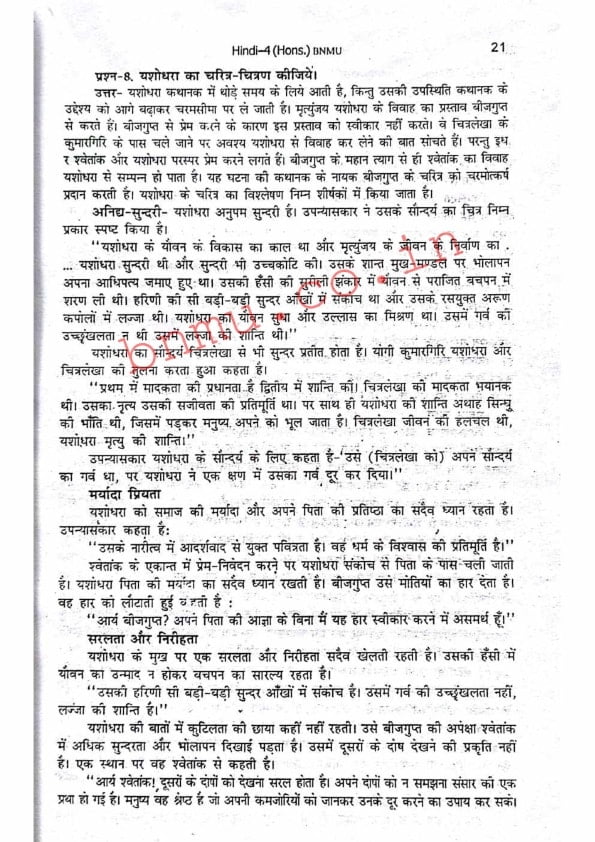 BNMU Hindi-4 Part-2 Hons. Guess Paper