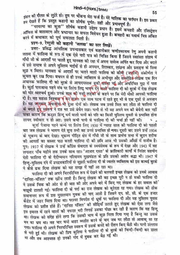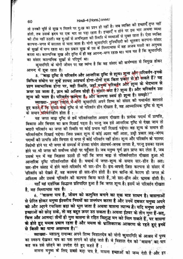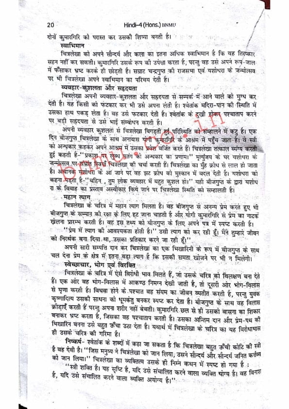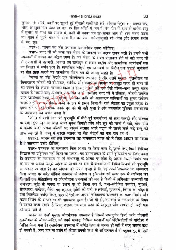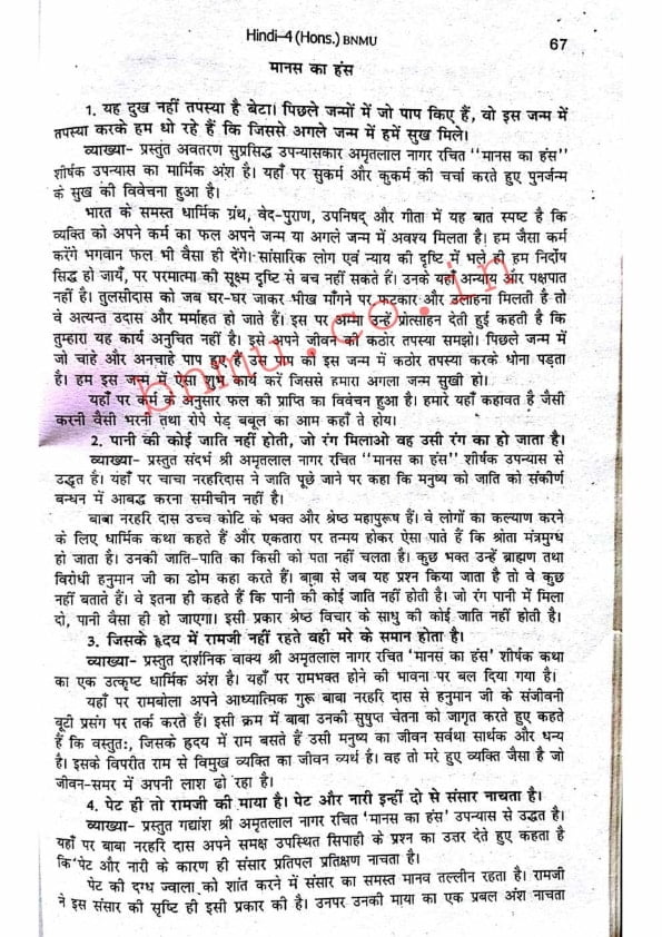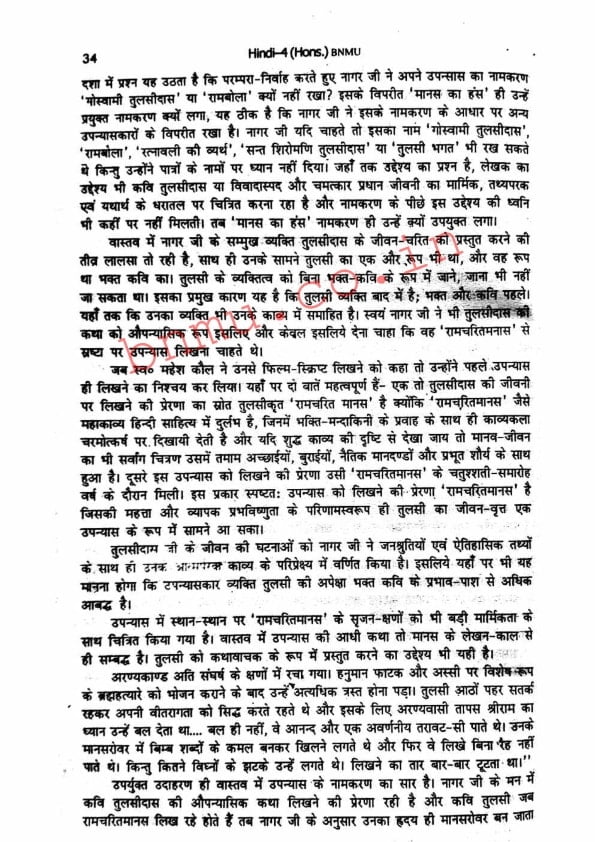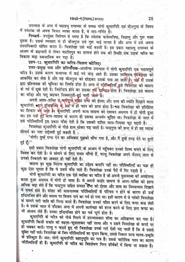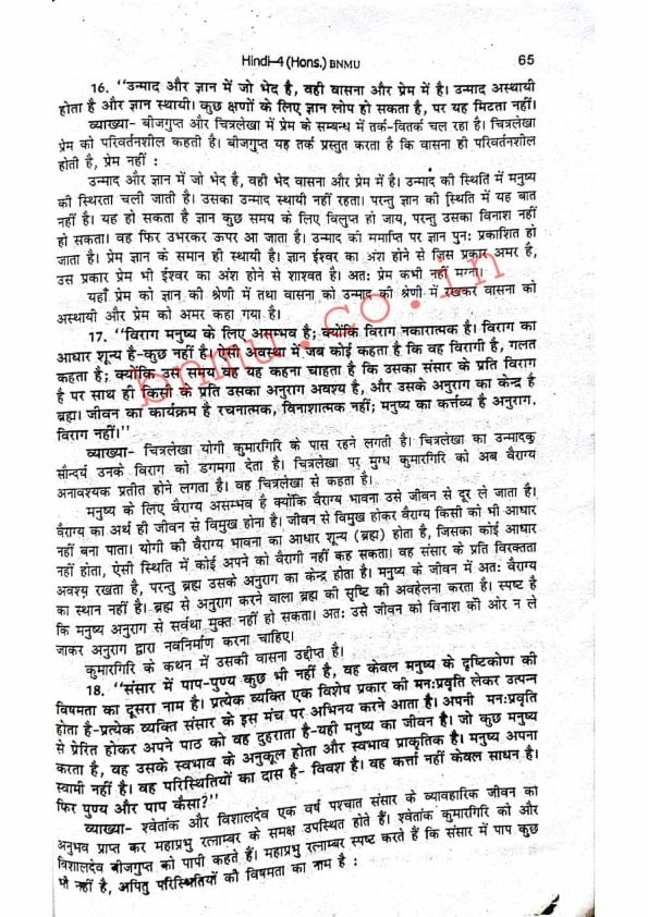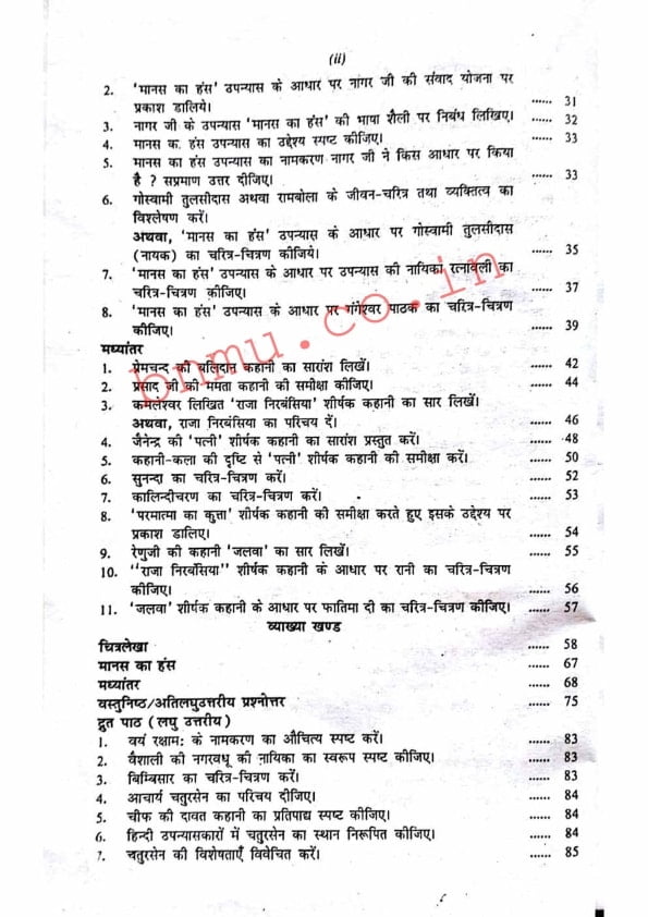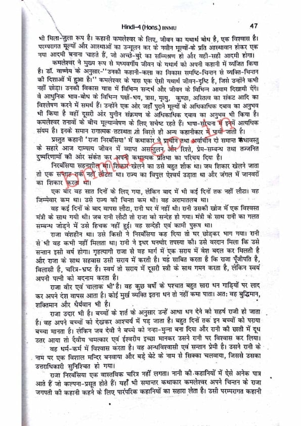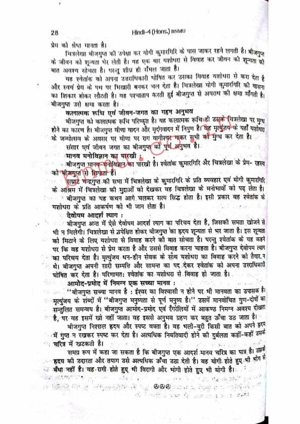 BNMU Hindi-4 Part-2 Hons. Guess Paper