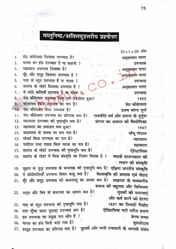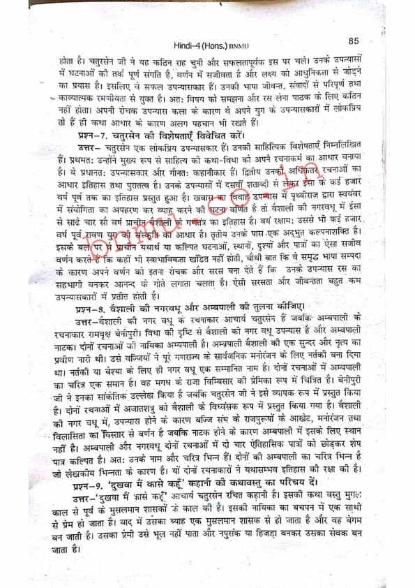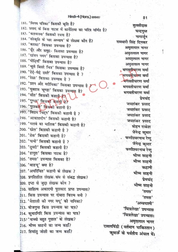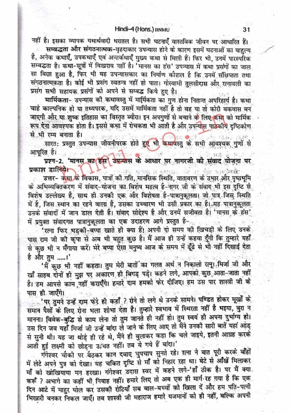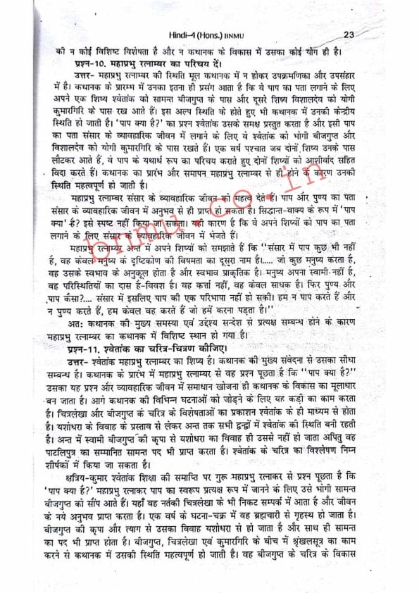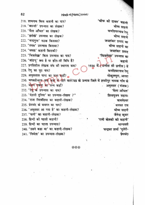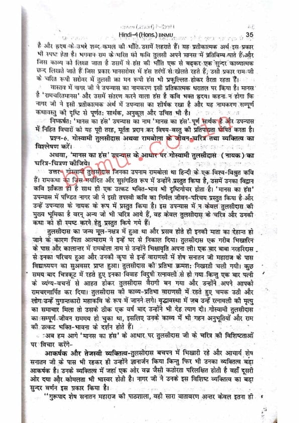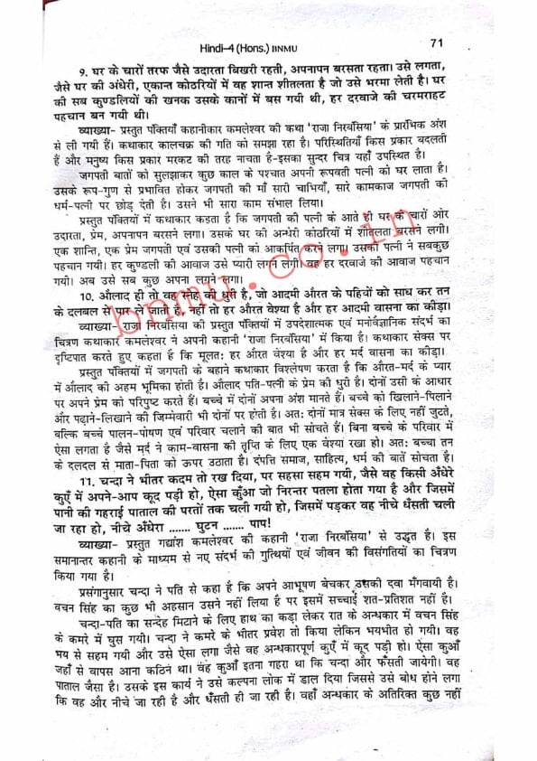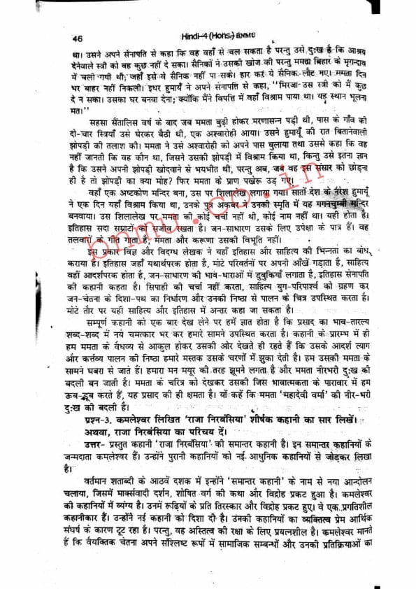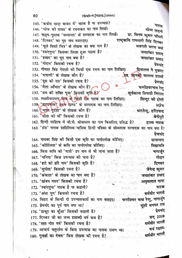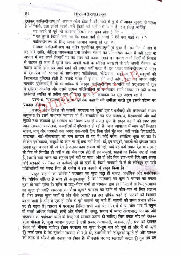 BNMU Hindi-4 Part-2 Hons. Guess Paper