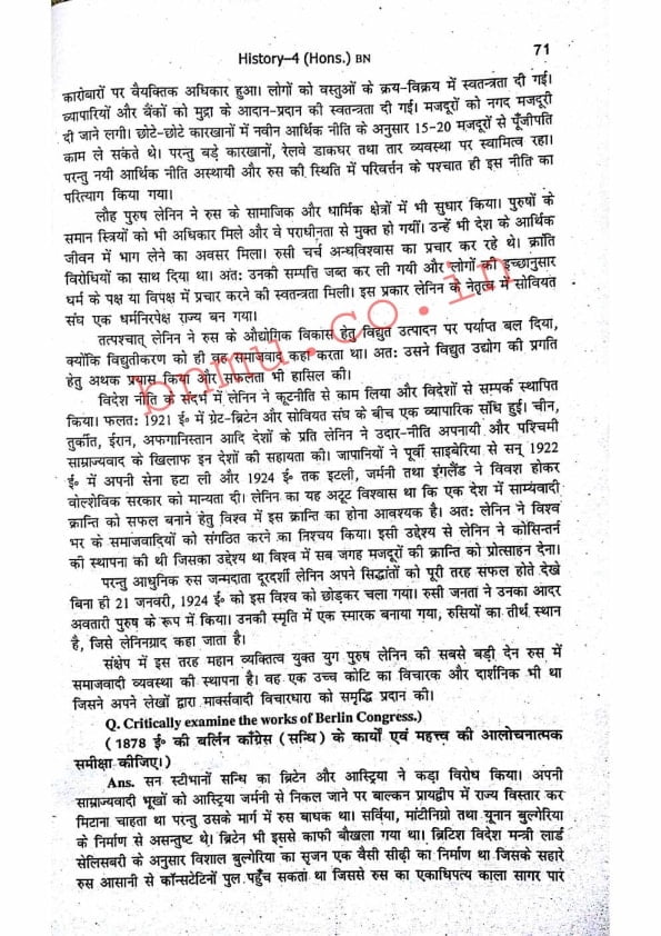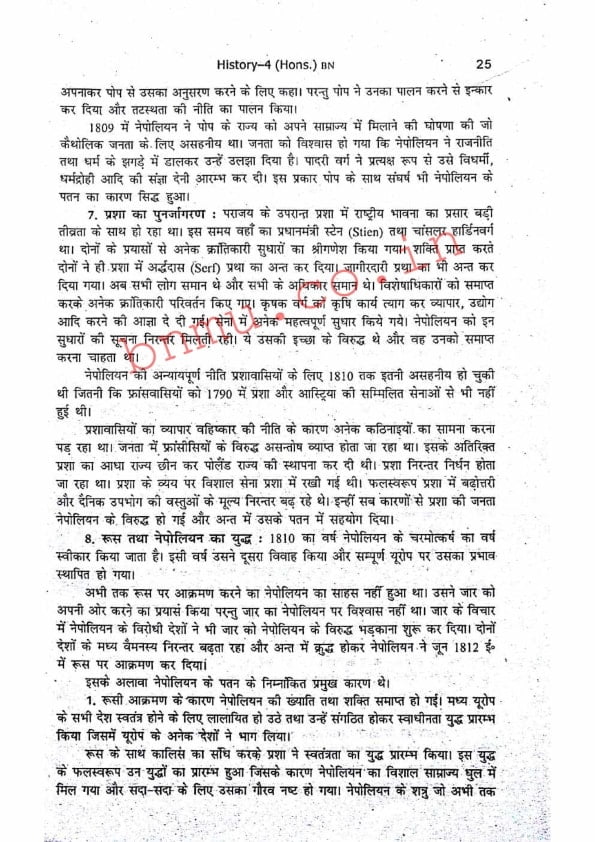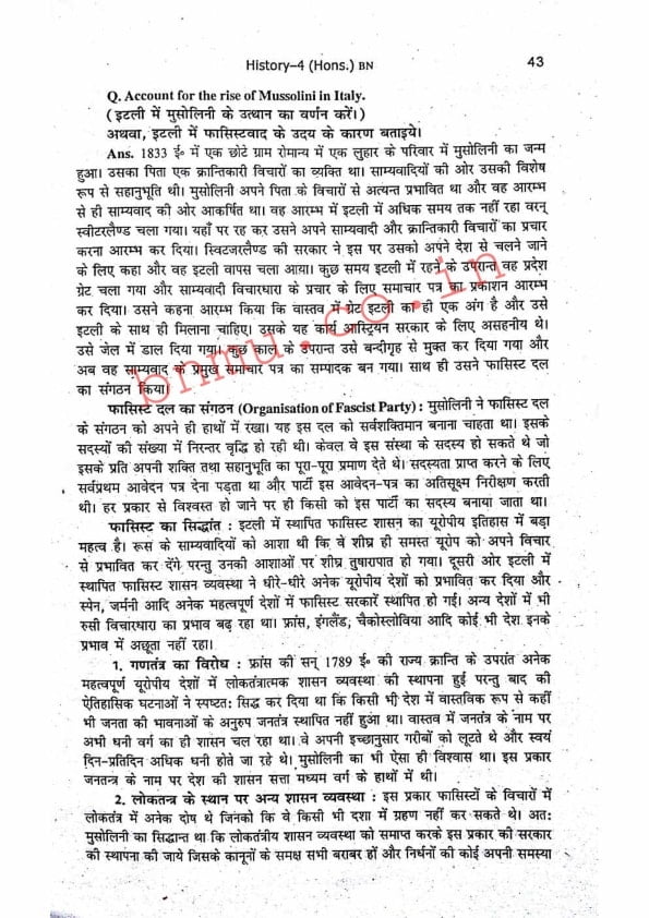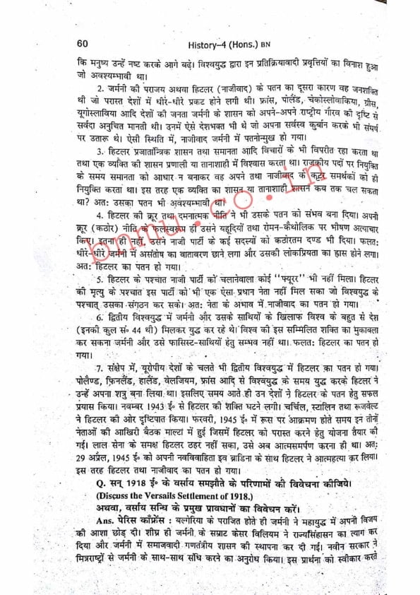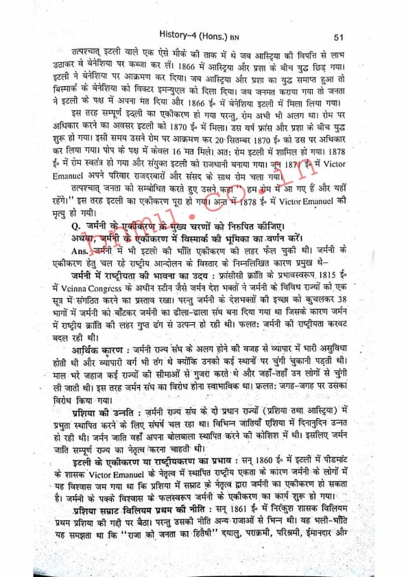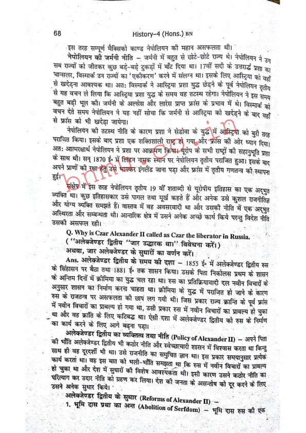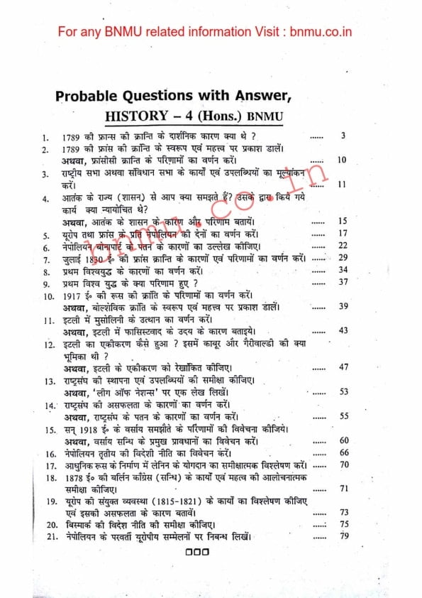 BNMU History-4 Part-2 Hons. Guess Paper