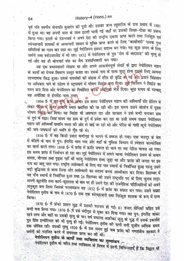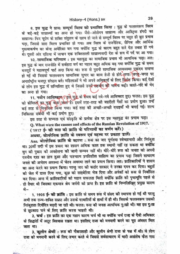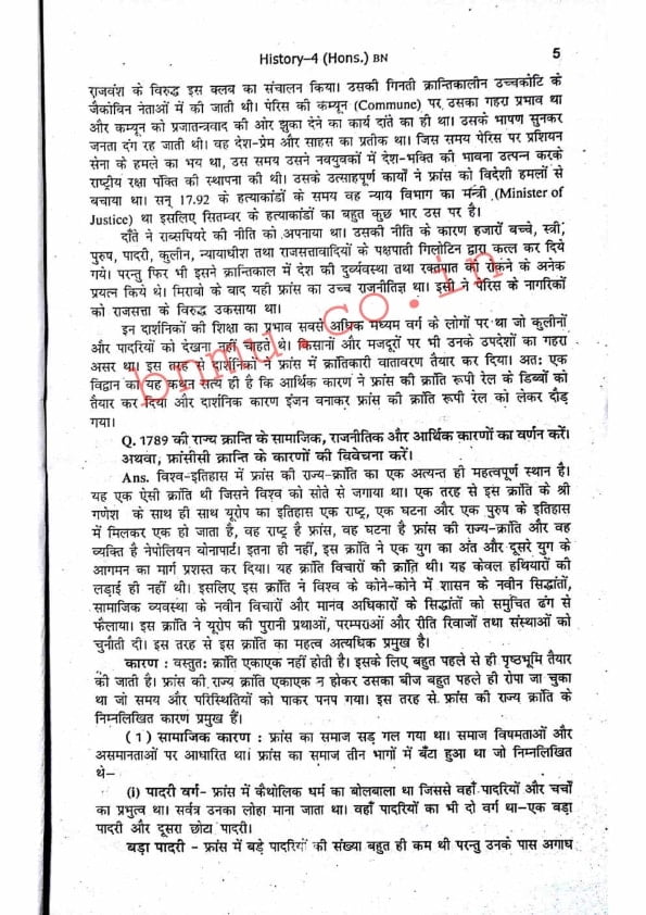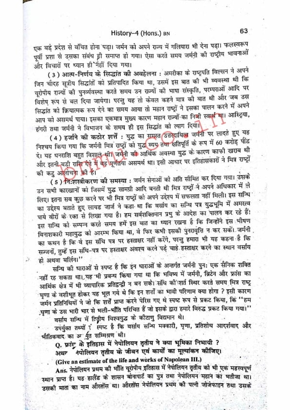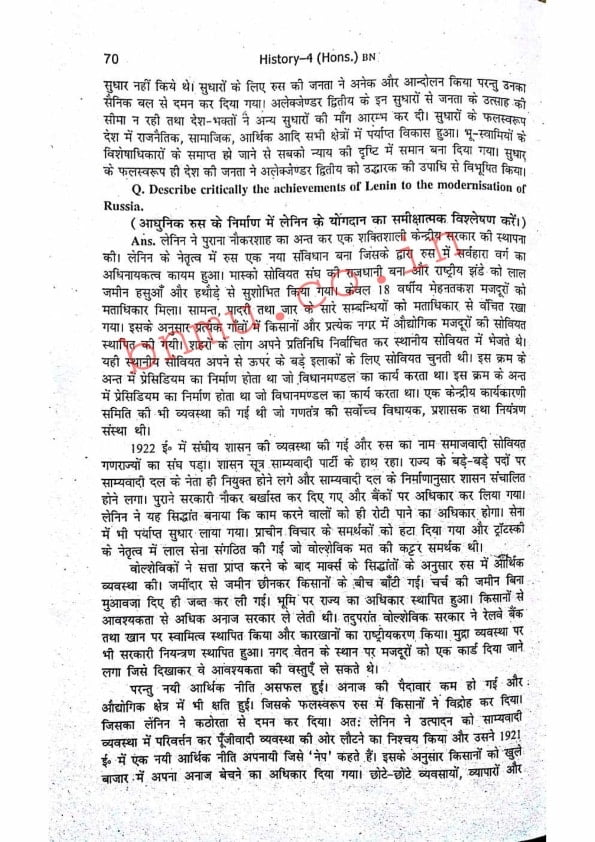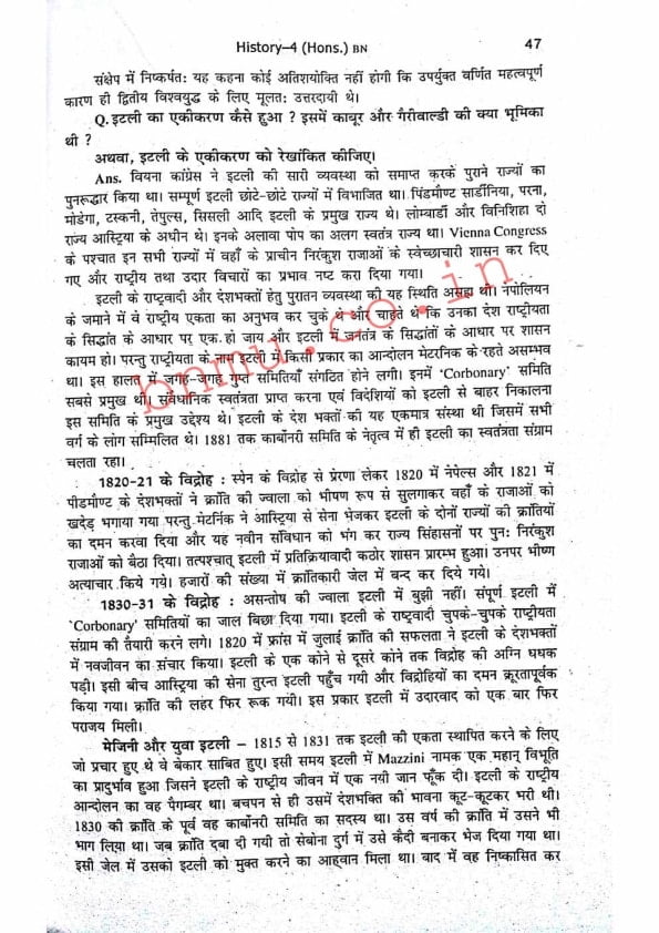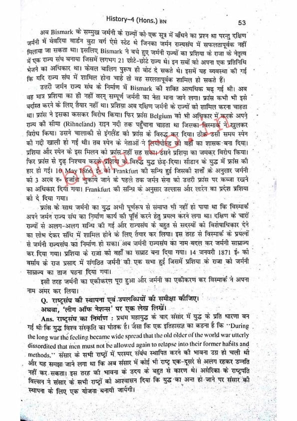 BNMU History-4 Part-2 Hons. Guess Paper